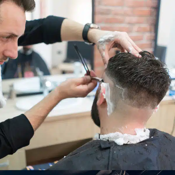 Rasurado tradicional con navaja, acompañado de productos pre shave y after shave para proteger e hidratar la piel. Ideal para quienes prefieren un look completamente afeitado con técnica profesional.